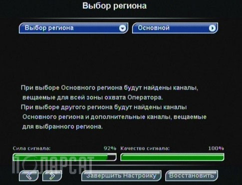 Внимание! Необходимо выбрать один из двух регионов — «Москва +0 ч.» или «Москва +2 ч.» — в зависимости от региона вашего проживания. В первом случае все каналы будут транслироваться по московскому времени, во втором — часть каналов будет транслироваться со смещением во времени на +2 часа от московского.