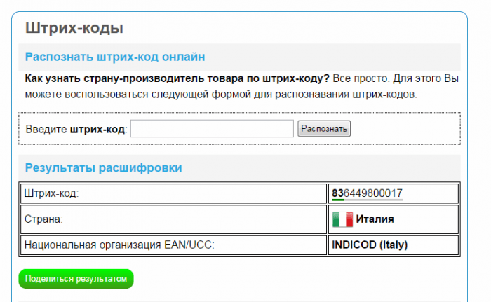Расшифровка товарного штрих-кода для различных стандартов кодирования