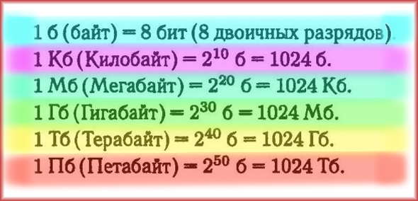 Как мы уже могли увидеть, в 1 мегабайте содержится 1024 килобайта, а в 1 килобайте – 1024 байта.