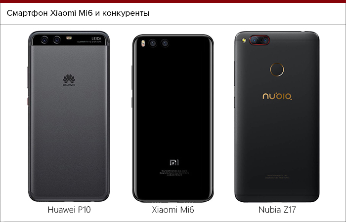 Фотографии идут в порядке Xiaomi Mi6, Huawei P10
