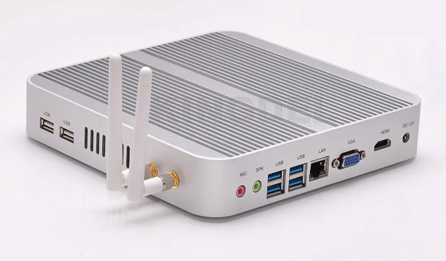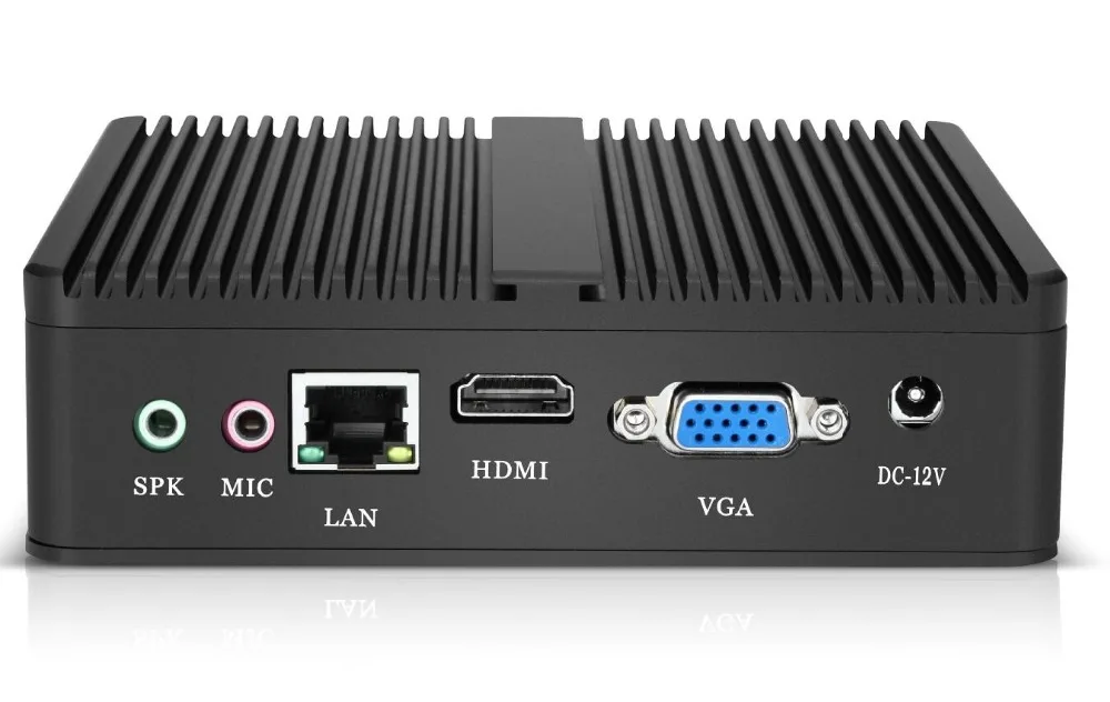 У мини-ПК два гигабитных Ethernet-порта, два HDMI 2.0 порта, шесть USB 3.0 порта, микрофон, плюс беспроводный чип с WiFI и Blutooth.