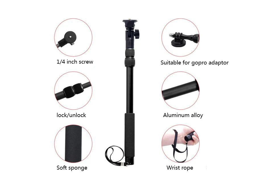Купить в один кликИдеальный монопод для любителей экстримальных видов спорта, острых ощущение и любителей запечатлеть все это на видео с помощью камеры Go Pro.