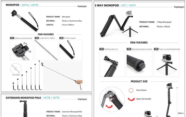 Необходимо учитывать три основные характеристики: вес, высота и конструкция. Наиболее распространенными материалами, используемыми для моноподов для камер, являются алюминий и углеродное волокно. Алюминий – более доступный вариант. Это прочный, легкий металл. Углеродное волокно — это прочный материал, который также прочен, легок и долговечен. Вес монопода — это максимальный вес, который он может выдержать без деформации. Выберите один с более высоким рейтингом, чем совокупный вес вашей самой большой камеры, объектива и аккумуляторной батареи. При поиске моноподов для цифровых зеркальных камер обратите внимание на модели с максимальной грузоподъемностью.