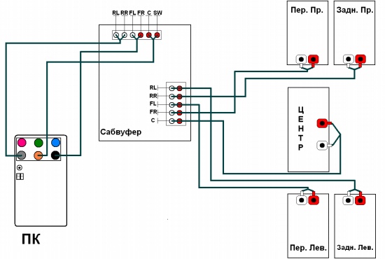 Например, синхронизация сабвуфера с боковыми спикерами.