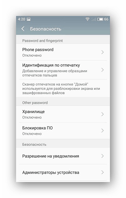 Мобильные гаджеты компании Meizu оснащены прошивкой Flyme. Там необходимо перейти в меню «Безопасность», где пользователь может выбрать приложения, для которых следует установить защиту паролем.