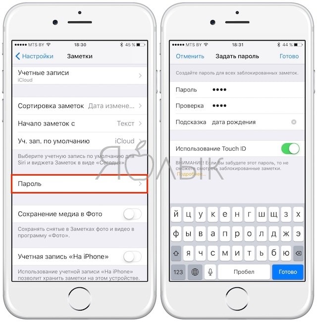- Активируйте функцию «Использование Touch ID», «Использовать Face ID» или придумайте пароль, а затем нажмите «Готово».