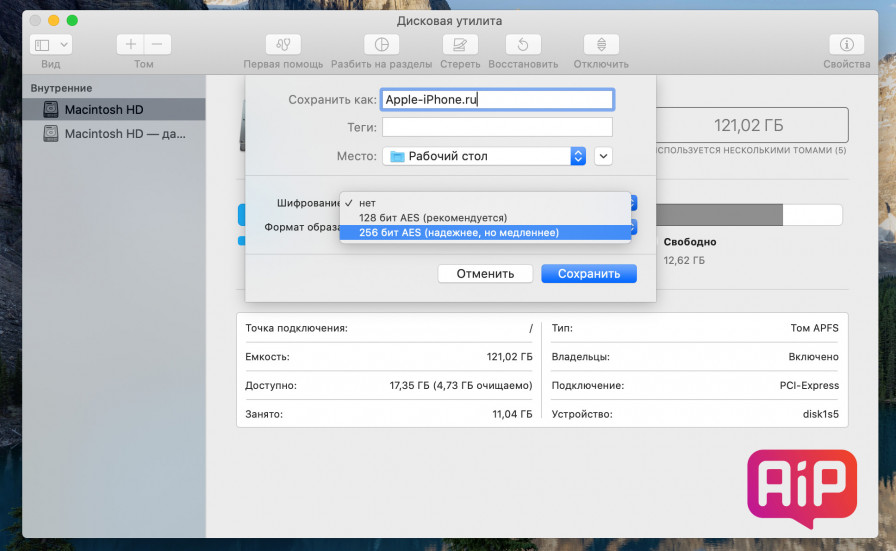 - Нажмите «Сохранить» и дождитесь, пока зашифрованная папка с расширением .dmg появится рядом с оригинальной. Исходную после этого можно удалить. Но перед этим советуем создать резервную копию на случай, если вы что-то напутали.