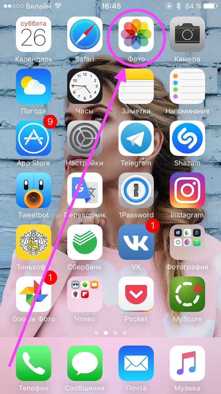 Шаг 1. Включите iPhone 5 и перейдите в раздел «Фото».