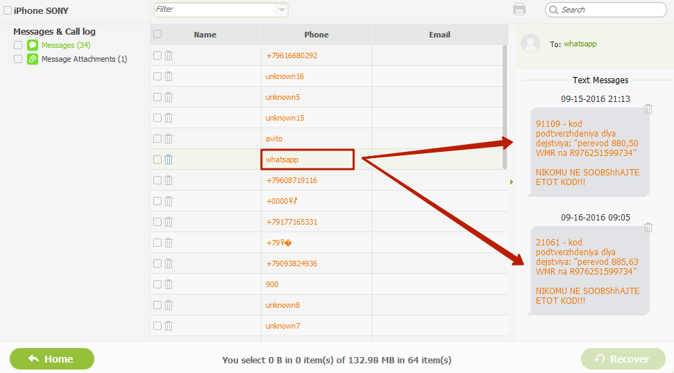 - Нажмите «Восстановить». Как только программа завершит процесс, то, что ей удалось восстановить, снова появится в меню вашего смартфона «Сообщения».