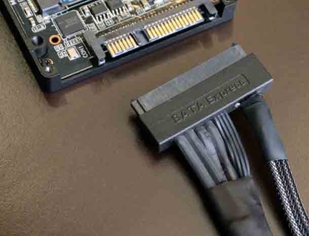 Интерфейс SATA Express разработан специально для ПК и обладает теоретической пропускной способностью 10 Гбит/с (что на 40% быстрее, чем SATA III). Новый интерфейс предполагает использование совершенно иного разъёма на плате и на накопителе, а также использование нового кабеля для передачи информации. К примеру, новый интерфейс уже доступен на материнской плате ASUS Z87 Deluxe/SATA Express, а также будет доступен на новых материнских платах на базе чипсета Intel Z97. Правда сами накопители будут появляться только к лету. К одному разъёму можно подключить один накопитель SATA Express или два накопителя SATA III.