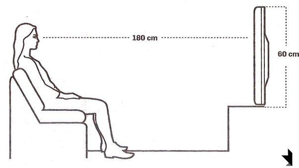 Высота центра установки телевизора = Высота кровати + Высота человека/2,