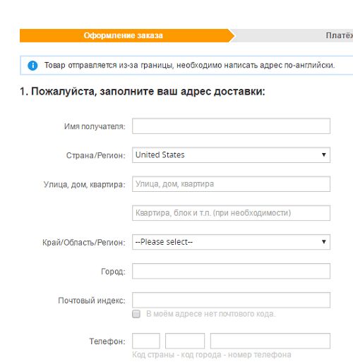 Так выглядит форма для ваших адресных данных на сайте Aliexpress.