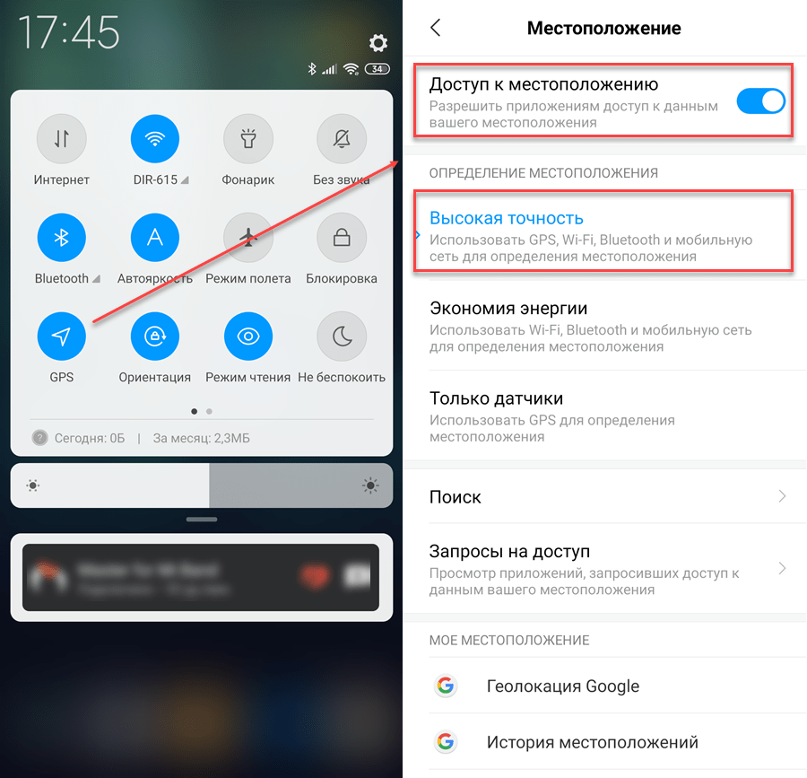 - Включение GPS на Android