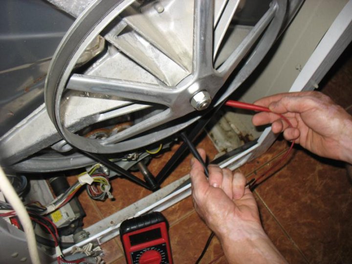 Ремень мог слететь или намотаться на шкив, или оказаться между барабаном и шкивом. В таком случае, когда ремень слетает, вращение барабана полностью блокируется. Нужно осмотреть приводной ремень, сняв заднюю стенку. Ремень слетел – наденьте его на место. В случае, когда требуется замена, внимательно осмотрите старый, чтобы ознакомиться с информацией о количестве клиньев и его длине для замены новым.