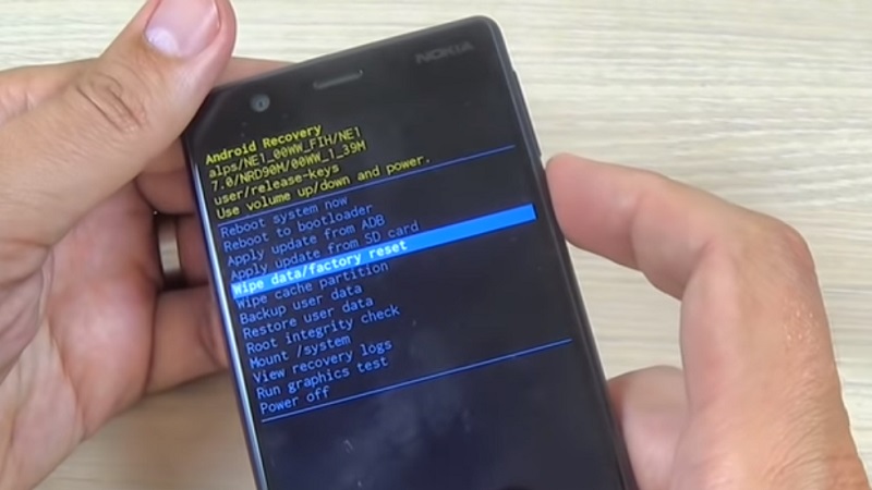 Шаг 2. Из предложенного перечня выберите строку «wipe data/factory reset”, как показано на изображении (стандартно перемещение происходит с помощью качельки громкости вниз/вверх, а для утверждения выбора, кнопка включения).