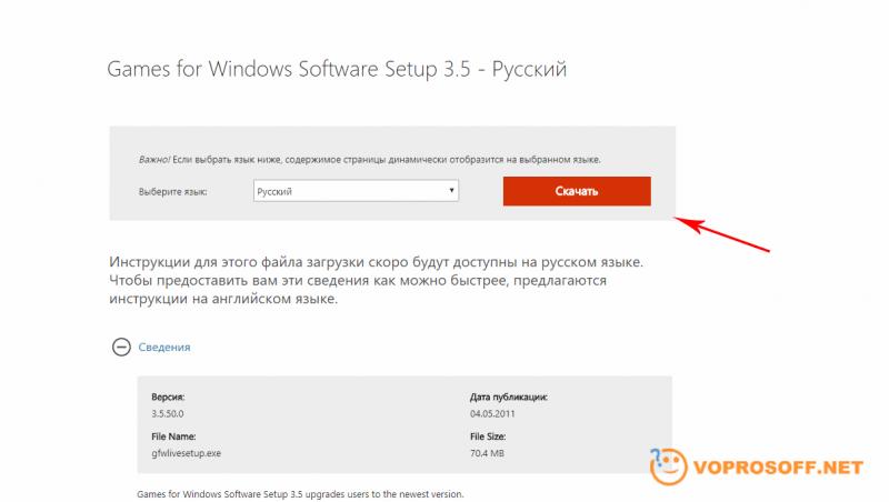 Последнюю версию клиентской программы Microsoft Games for Windows Live можно загрузить по этой ссылке: