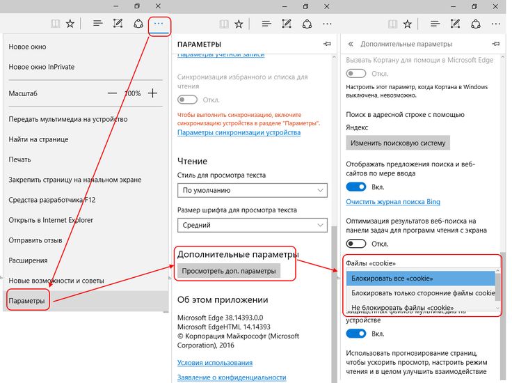Как включить прием файлов куки в Microsoft Edge