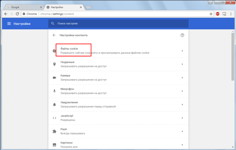 Как включить прием файлов куки в Google Chrome