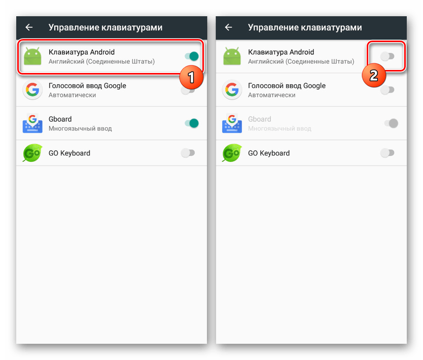 Дополнительно, чтобы избежать возможных проблем в процессе использования новой клавиатуры, убедитесь в отключении прочих методов ввода. Особенно это относится к варианту «Клавиатура Android», доступному и активированному по умолчанию на большинстве устройств.