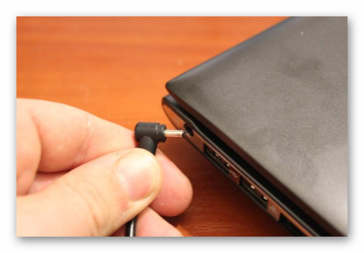 - Не заменяя аккумулятор , снова подключите адаптер переменного тока к ноутбуку.