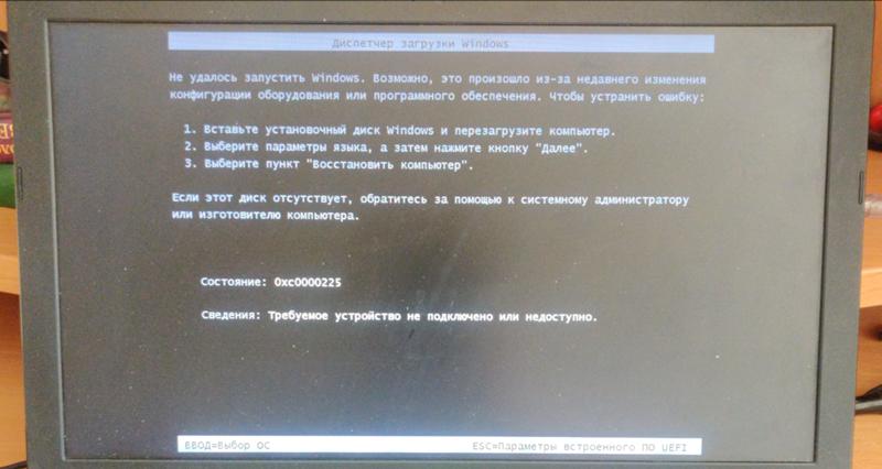 Выводится сообщение что невозможно загрузится с загрузочного устройства