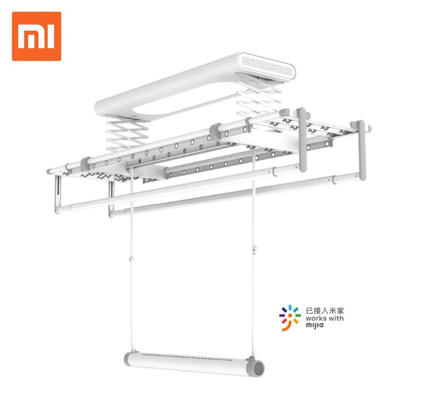 Механизированная сушилка для одежды от Xiaomi, которая имеет привод и крепится на потолке. При необходимости, используя плагин в приложении Mi Home, направляющие можно опустить и положить вещи для сушки. После аналогичным образом со смартфона можно поднять конструкция. Максимальная нагрузка — 30 килограмм. Более того устройство имеет встроенную сушилку, которая распространяет тёплый воздух на одежду.