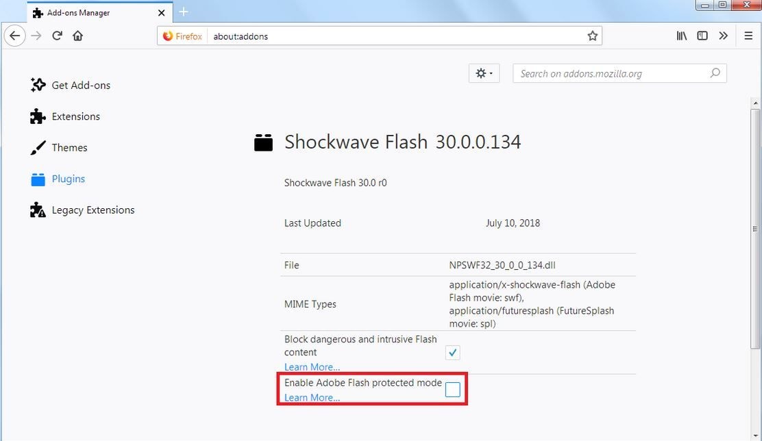 Чтобы убедиться, что Flash правильно установлен и загружен в переносную версию Firefox, перейдите в Менеджер дополнений, нажав Ctrl + Shift + A -> Плагины. Вы также можете проверить его работу, перейдя на тестовую страницу Adobe Flash.