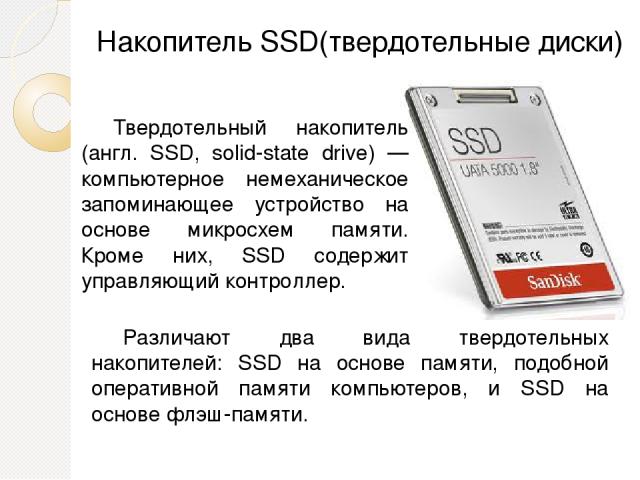 Твердотельные накопители не имеют никаких движущихся механических деталей.
