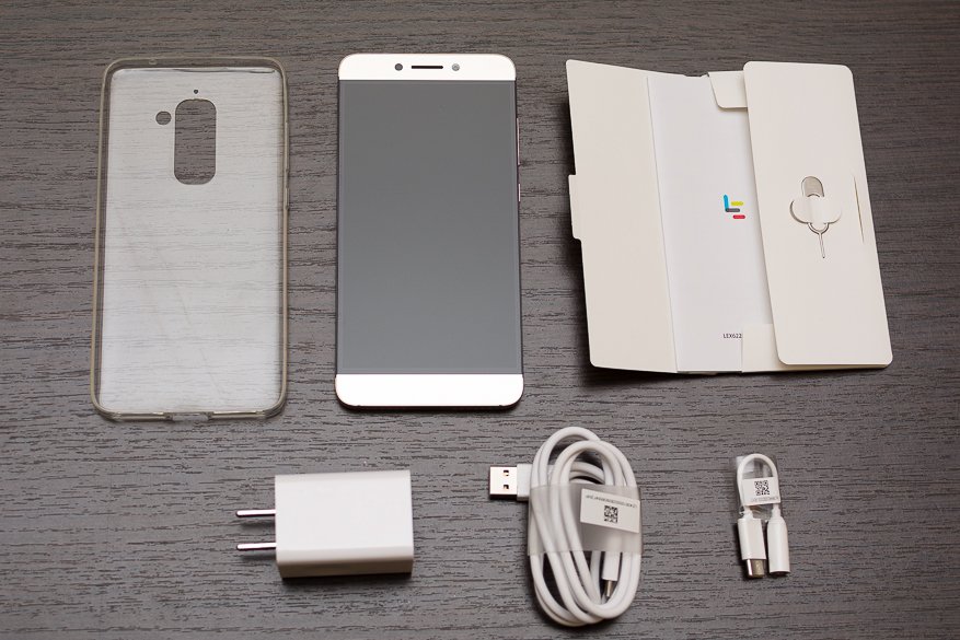 Смартфон поставляется в белой прямоугольной коробке, внутри находится сам Le S3, зарядный блок к нему, скрепка для извлечения SIM-трея, USB Type-C кабель и фирменный переходник с USB-C на 3.5 мм аудио. Еще в коробе был самый обычный прозрачный силиконовый чехол и черный адаптер под наши розетки (скорее всего, его положил продавец, а не сам производитель). Комплект поставки хороший, очень радует наличие переходника под наушники, о нем поговорим ниже.