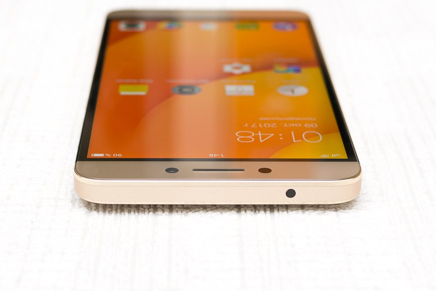 LeEco Le S3 может быть с разными расцветками корпуса. У меня в обзоре золотистый. Корпус выполнен из алюминия. Фронтальную часть смартфона покрывает стекло без скошенных краёв.