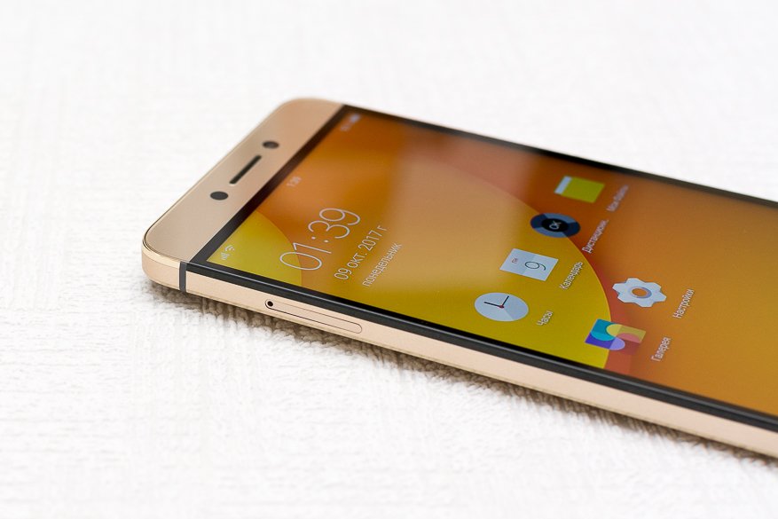 Дисплей размером 5,5 дюймов. Я нигде не нашёл информации, что в этом смартфоне установлено защитное стекло Gorilla Glass. Но для его родного брата LeEco Le 2 это заявлено. За неделю, которую я провёл со смартфоном, на экране не появилось ни одной микроцарапины. Использовал я его, как обычно — без чехла и плёнок носил в сумке, карманах, клал на стол экраном вниз и пр.