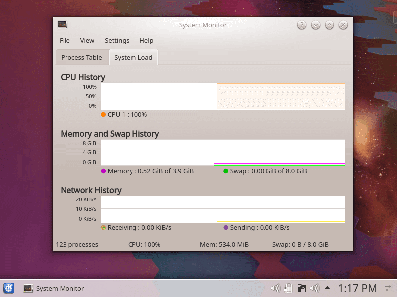 Были всплески при более интенсивном использовании с открытым браузером, использованием нескольких вкладок и запуском видео, чего и следовало ожидать. Несмотря на шипы, Arch оставался гладким в использовании. Однако KDE не является идеальной средой рабочего стола для использования на ПК с меньшими ресурсами.