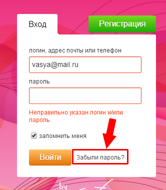 Но если вы хотите зайти в Одноклассники с чужого компьютера или ноутбука, а данные частично забылись, то придется немного потрудиться. Зайти без пароля и логина не получится. Итак, ваши действия. Перейти по ссылке. Поскольку вы не помните свой пароль, нажмите на строку «Забыли пароль?»