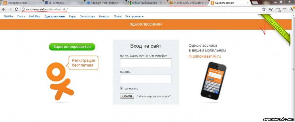 Зайдите на этот сайт и убедитесь, что в адресной строке именно адрес «Одноклассников»: www.odnoklassniki.ru (ok.ru). Если все правильно, переходим к следующим шагам.