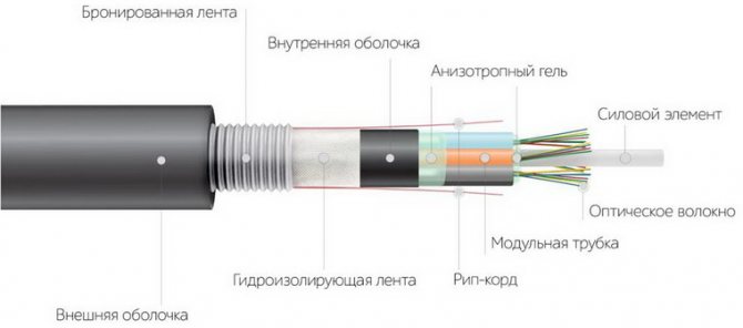 кабеля с дополнительными элементами защиты, что оберегает его от механических повреждений. Непосредственно в землю прокладываются оптоволоконные