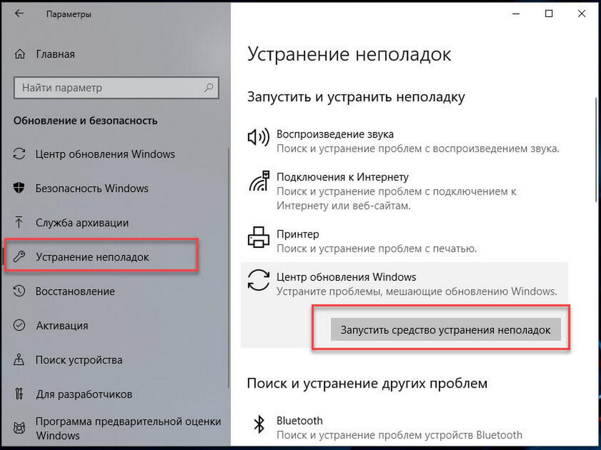- Открыть вкладку устранения неполадок.