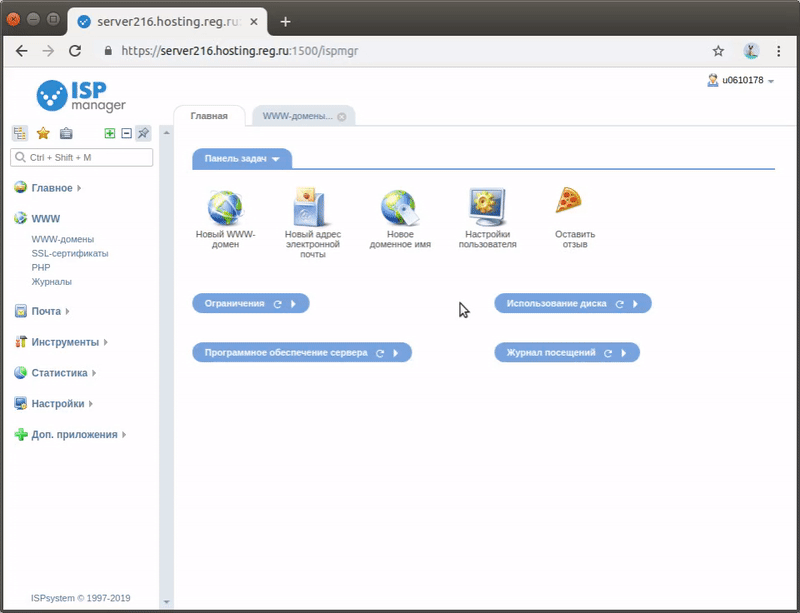 В разделе «WWW» перейдите на страницу WWW-домены. Выберите домен, на котором возникает ошибка 403, и нажмите кнопку