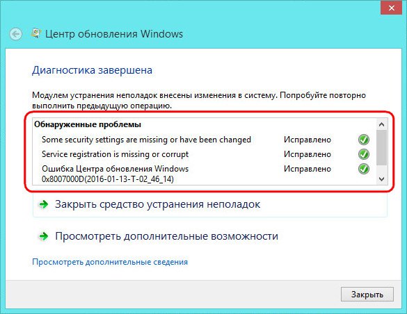 Если клиентский компонент Центра обновления Windows или пакет обновления успешно установлен, то на этом процедура завершена. Если проблема не устранена, или если средство проверки готовности системы к обновлению не смогло найти причину, свяжитесь с нами для получения дополнительной помощи.