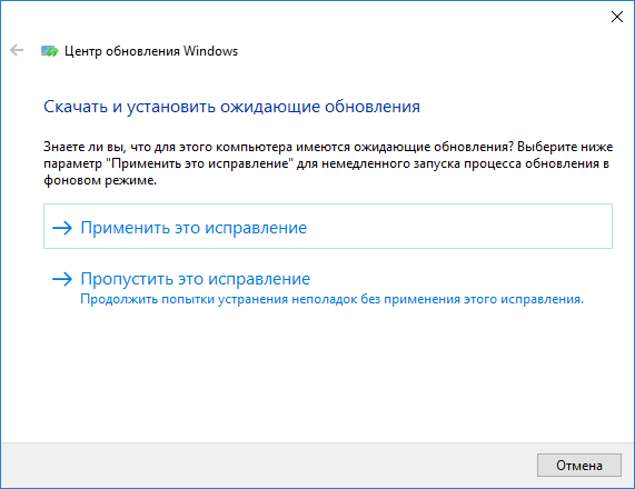 Выберите Далее и следуйте инструкциям мастера, чтобы найти и устранить проблемы с Центром обновления Windows.