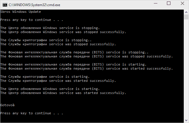 Выполнение команды может занять несколько минут.Закройте командную строку и повторно запустите Центр обновления Windows.