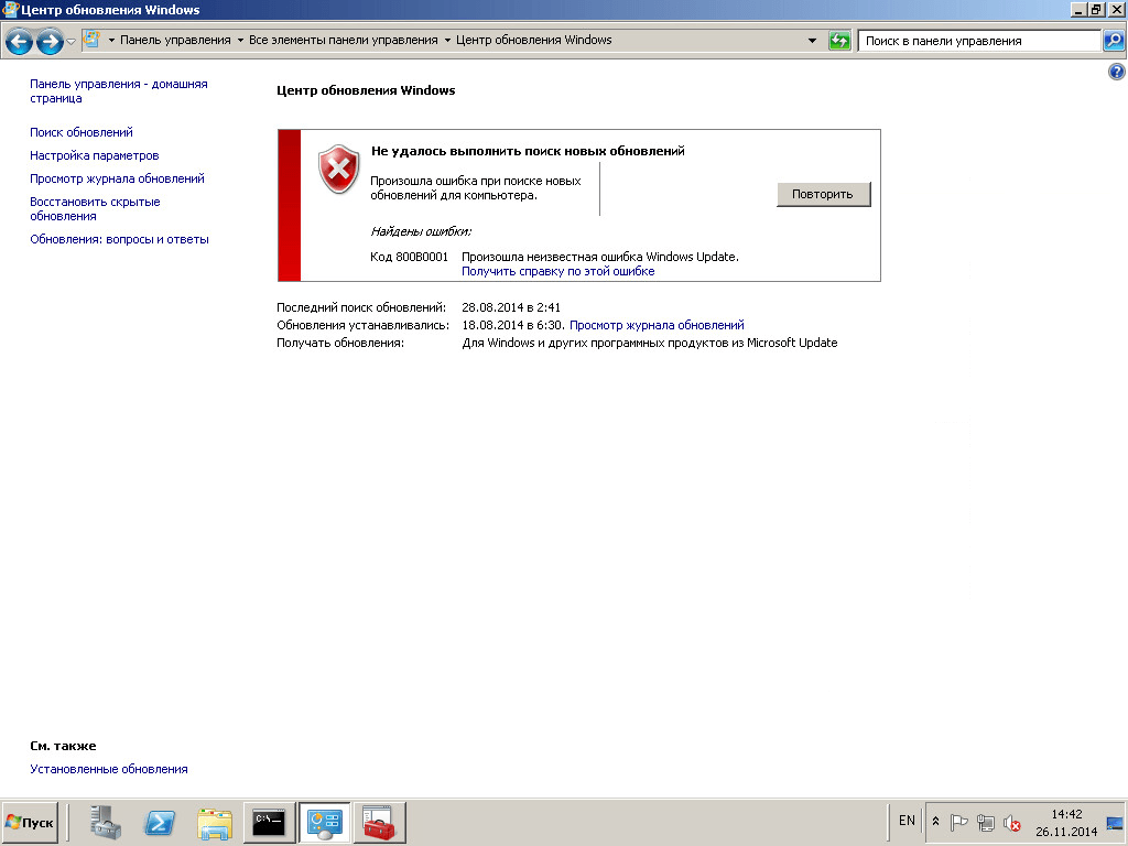 | 0x80070490 | ERROR_NOT_FOUND | Не удалось выполнить поиск новых обновлений. |