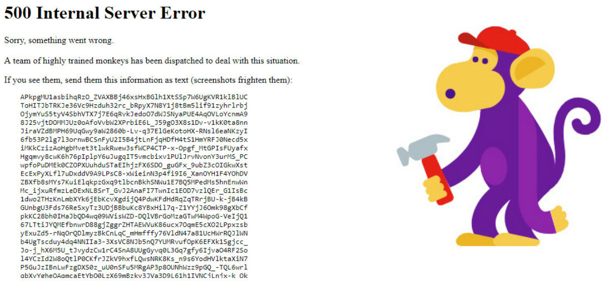 Веб-сервер (работающий на веб-сайте) столкнулся с неожиданным условием, которое не позволило ему выполнить запрос клиентом (например, вашим веб-браузером) для доступа к запрошенному URL-адресу.
