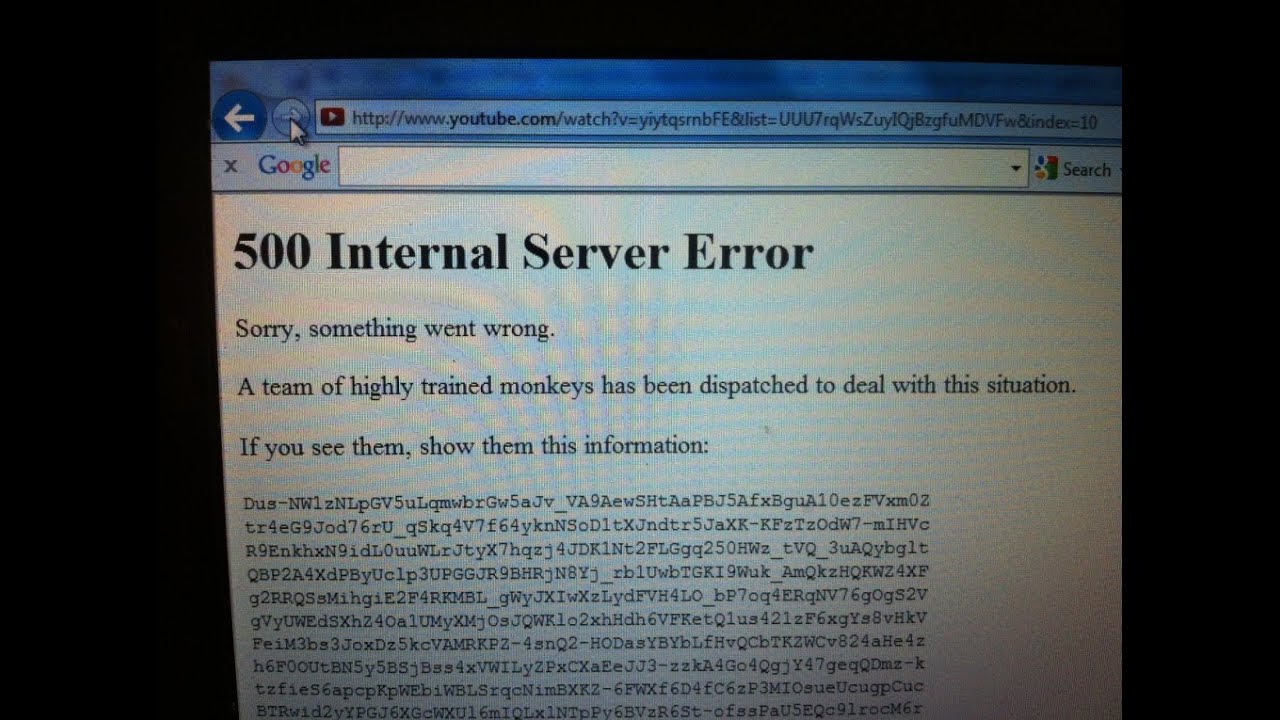 500 Internal Server Error на YouTube