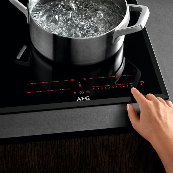 Индукционная технология автоматически определяет, когда магнитная посуда помещается в зону нагрева поверхности варочной панели, а электромагнитное поле, расположенное под стеклокерамической варочной панелью, передает ток (тепло) непосредственно на посуду. Индукция исключает необходимость нагрева горелки, такой как электрическая катушка, что повышает общую эффективность нагрева.