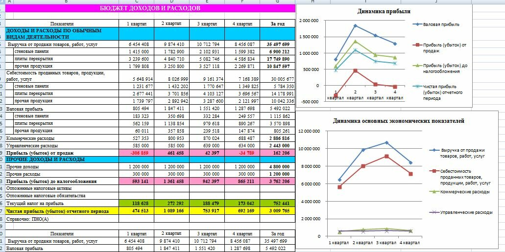 Доходы – выручка (отгрузка) компании за период. Её лучше разбить по тем видам/направлениям деятельности или по группам товаров, по которым вам важно контролировать маржинальную прибыль (рентабельность).