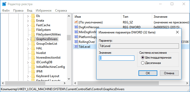 - Теперь нужно проверить наличие файла «TdrDelay». Если он есть, то открываем и меняем значения задержки. По умолчанию может стоять любое число, просто увеличиваем его. Лучше всего менять его на 5 шагов — если было «10», меняем на «15». Если начинает появляться синий экран, необходимо установить цифру поменьше.