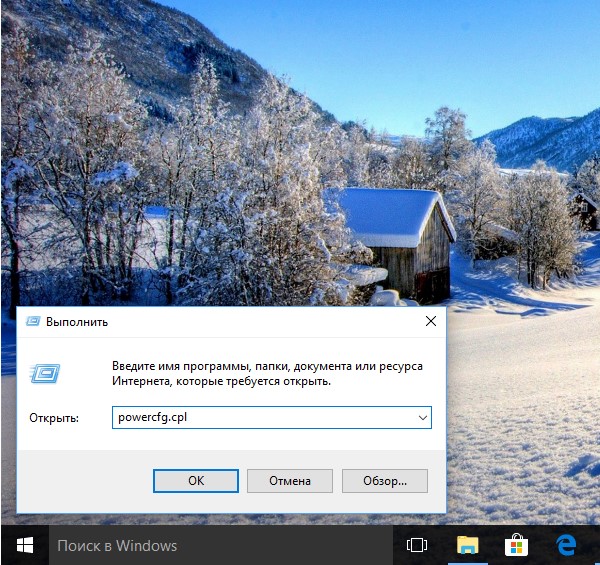 В поле «Открыть» команду «powercfg.cpl», нажимаем «Enter»