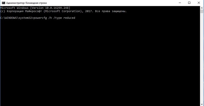 - чтобы отключить ее, введите следующую команду «powercfg.exe /hibernate off».