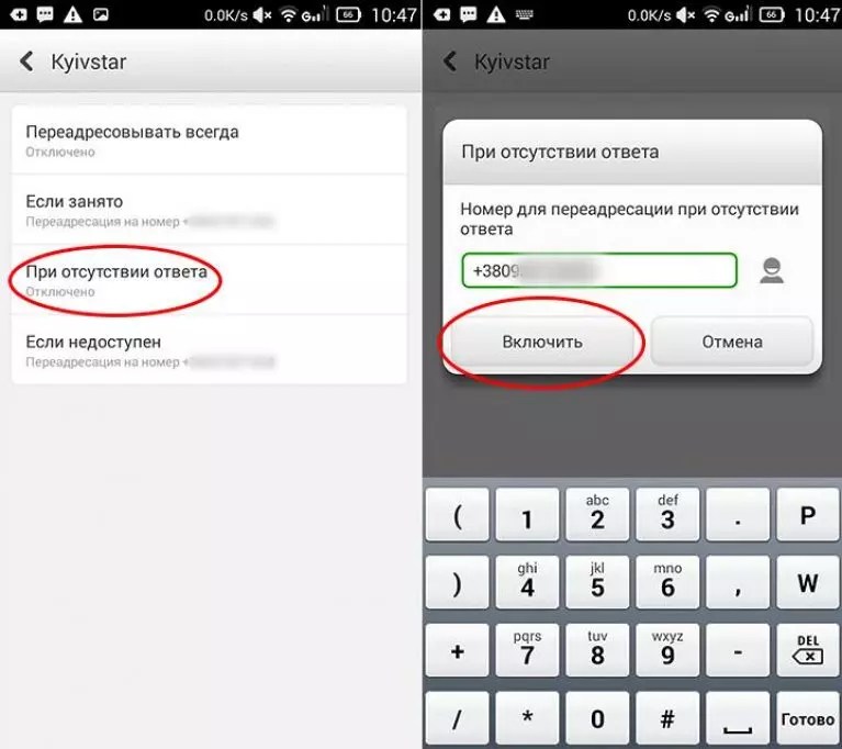 - Условную опцию можно включить, если абонент занят. Для этого вам потребуется набрать комбинацию ** 67 * номер телефона, на который нужно переадресовать звонок #. В этом случае информация о времени не требуется.