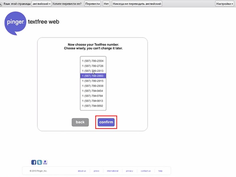 Затем система выдаст перечень номеров. Вам нужно выбрать один из них и подтвердить с помощью пункта «Confirm». Эту процедуру можно выполнить только один раз, потому как замена номера для определенной учетной записи запрещена.